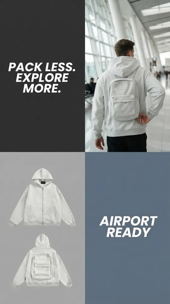 Unisex Travel Baggage Hoodie with Large Hidden Back Pocket