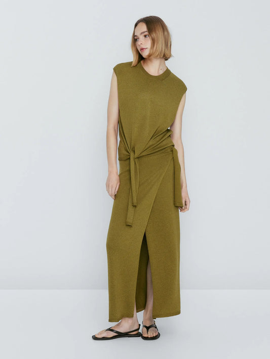 Vireous Women's Fashion Knitted Side-Knot Sleeveless Army Green Sweater