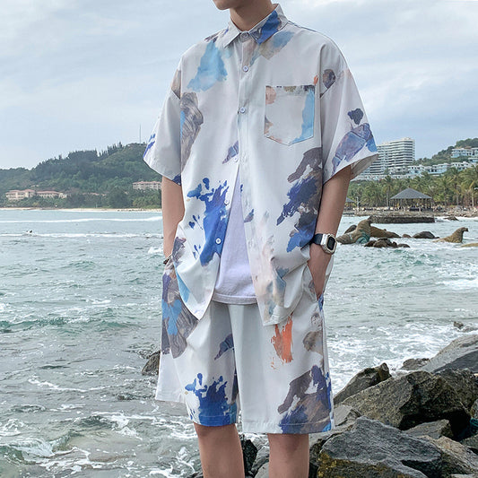 Beach Graffiti Cool Men's Shorts and Shirt Outfit, Plus Sizes