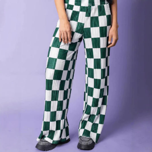 Avant Garde Minimalist Check-Print Pleated Women's Trousers