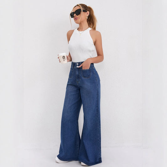 Vireous High-Waist Floor-Length Flared Fashion Jeans, Plus Sizes