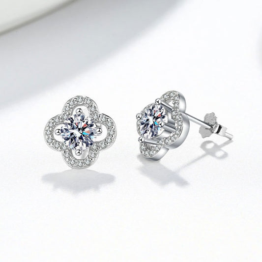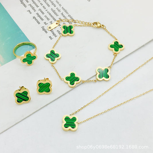 Four Leaf Flower Necklace Earrings Bracelet Set, Titanium