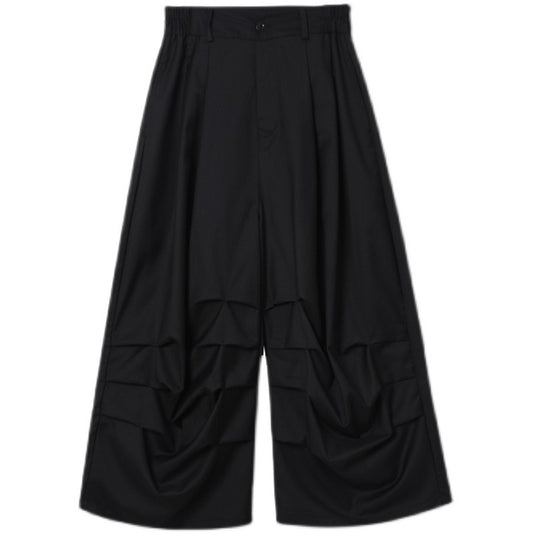 High Street Trendy, Dark Pleated Cropped Stage Wear Casual Unisex Pants