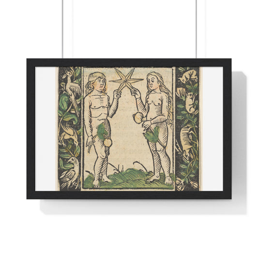 Adam and Eve Holding a Star, Illustration from 'Beschlossen Gart des Rosenkranz Mariae' by Hans Baldung, from the Original, Framed Art Print
