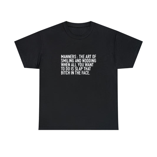 Manners: The Art of Smiling and Nodding, Funny Sarcastic T-Shirt