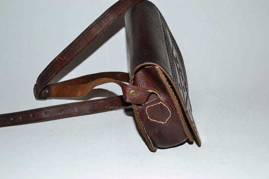 Marou Handmade Leather Handbag with Floral Stamp Pattern
