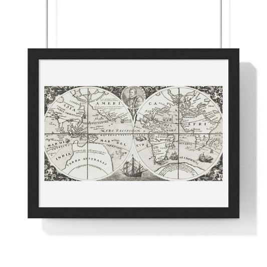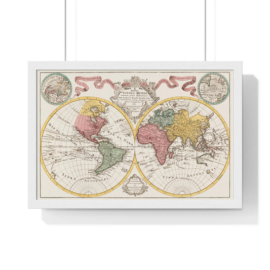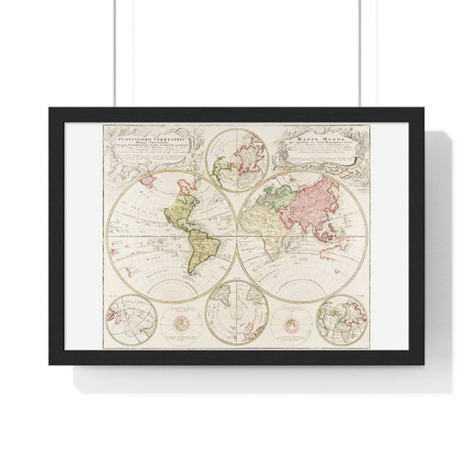 Antique Map of the World, Planiglobii Terrestris, Mappa Universalis (1746) by Johann Baptist, from the Original, Framed Art Print