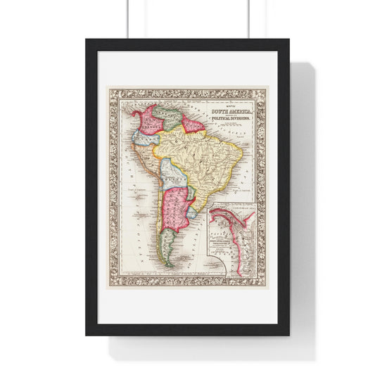 Antique Map of South America, Showing its Political Divisions (1863) by Samuel Augustus Mitchell, from the Original, Framed Art Print