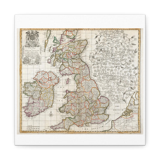 Antique Map of England Scotland and Ireland (1687) drawn by Robert Morden Art Print from the Original on Satin Canvas