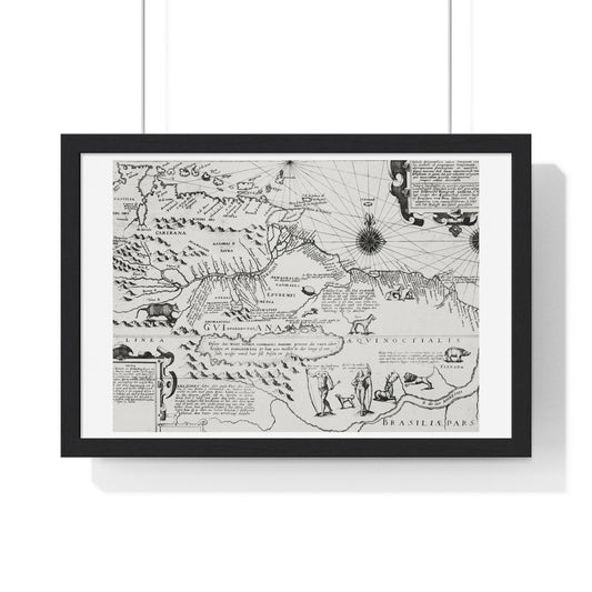 Antique Map from the Grand Voyages to the New World (1596) by Theodor de Bry from the Original, Framed Art Print