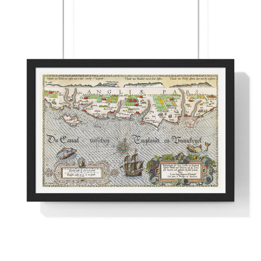 Antique Map of Hampshire and the Isle of Wight 'Kaart van de Zuidengelse Kust Tussen de Isle of Wight en Dover' by Joannes van Doetecum, from the Original, Framed Art Print