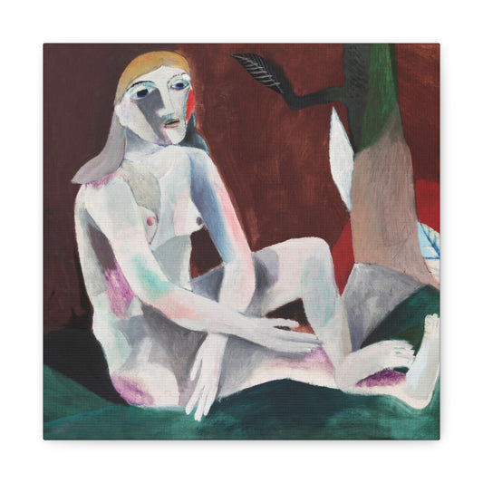 Seated Female Nude with Flower (1918) by Heinrich Campendonk, from the Original, Print on Satin Canvas