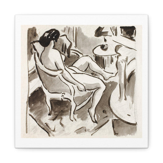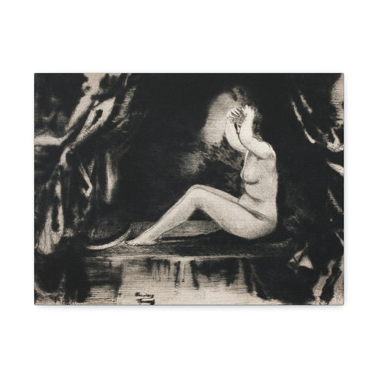 Seated Nude: The Alcove (1906) by Theodore Roussel from the Original, Art Print on Satin Canvas