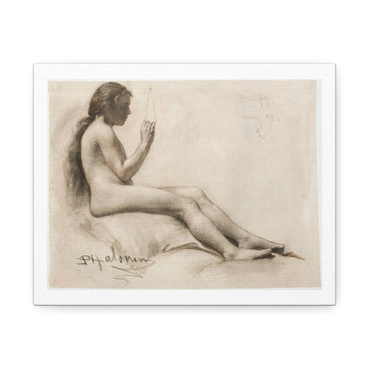 Seated Nude 'July' (1893) by Otto H Bacher, Art Print from the Original on Canvas