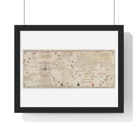 Antique World Map (1529) by Diogo Ribeiro from the Original, Framed Art Print
