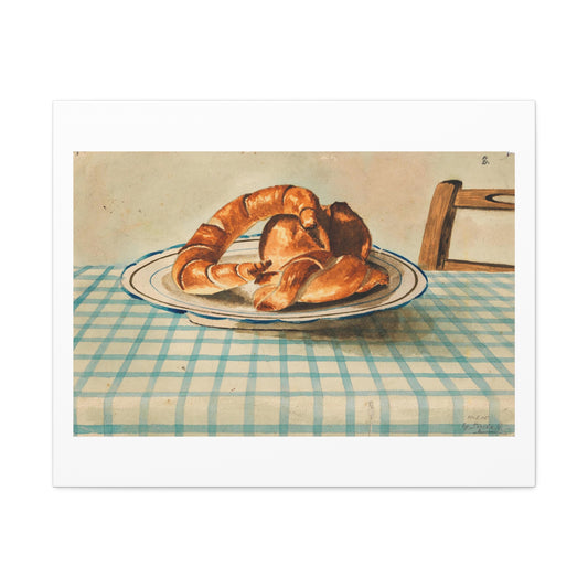 Still Life with Pastry Plate by Egon Schielee from the Original, Art Print on Satin Canvas