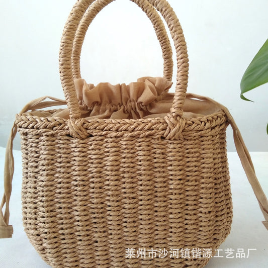 Straw Braided Drawstring Handbag Travel Semi-Formal Beach Bag