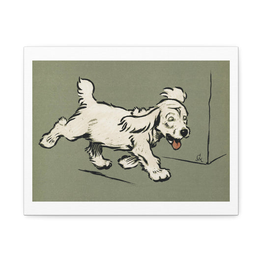 The White Puppy Book by Cecil Aldin (1910) a White Dog ‘Rags’ Running, Art Print from the Original on Canvas