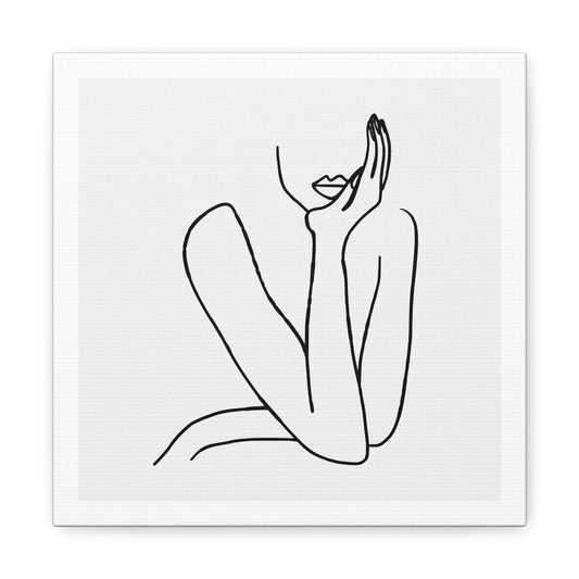 Thinking Woman Portrait, Line Art Print on Canvas, Stretched