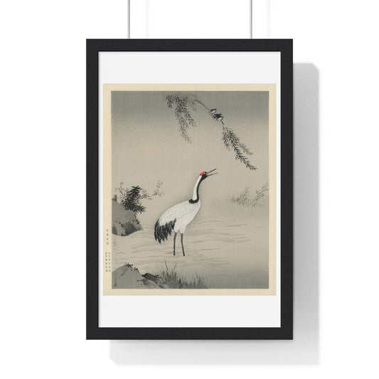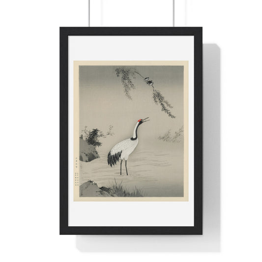 Traditional Portrait of a Beautiful Japanese Crane by Kano Motonobu (1476-1559) from the Original, Framed Art Print
