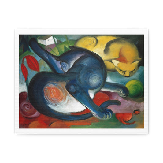 Two Cats, Blue and Yellow (1912) by Franz Marc, from the Original, Art Print on Canvas