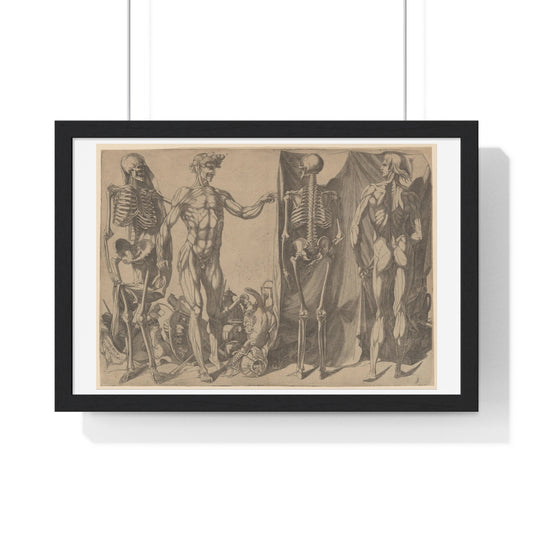 Two Flayed Men and Their Skeletons (1540–1545) by Domenico del Barbiere, from the Original, Framed Art Print