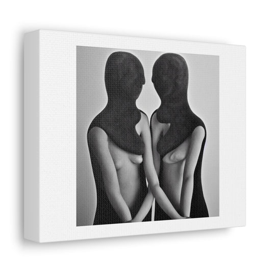 Two-Headed Woman Digital Art 'Designed by AI' on Satin Canvas, Stretched