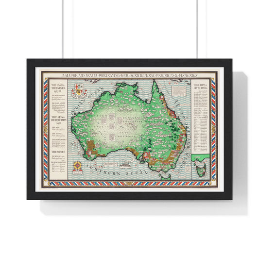 Vintage Map of Australia (1930) by MacDonald Gill, from the Original, Framed Art Print