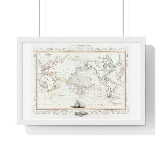 Vintage Map, the Voyages of Captain James Cook (1852) by James Cook, from the Original, Framed Print