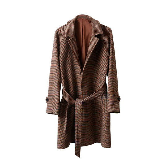 Vireous British-Style Classic Houndstooth Men's Woollen Coat