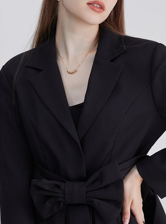 Vireous Bowknot High Collar Women's Tuxedo Shirt