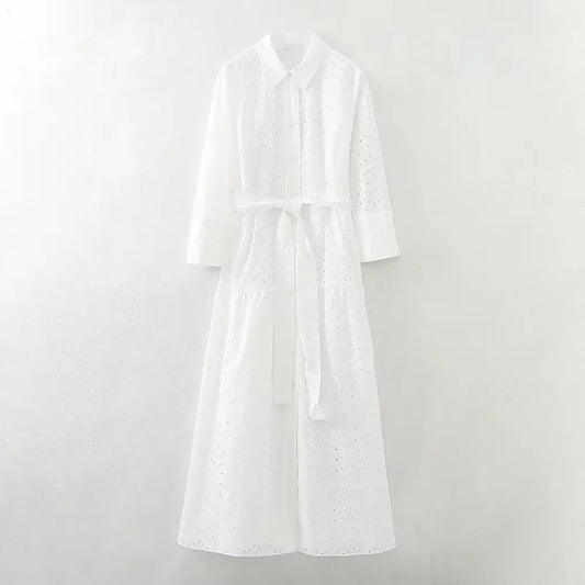 Vireous Cotton Embroidery Classic French Country-Style Dress