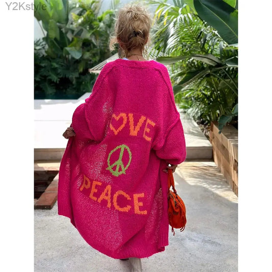 'Love and Peace' New Design Women's Long Knitted Cardigan, Sweater Coat