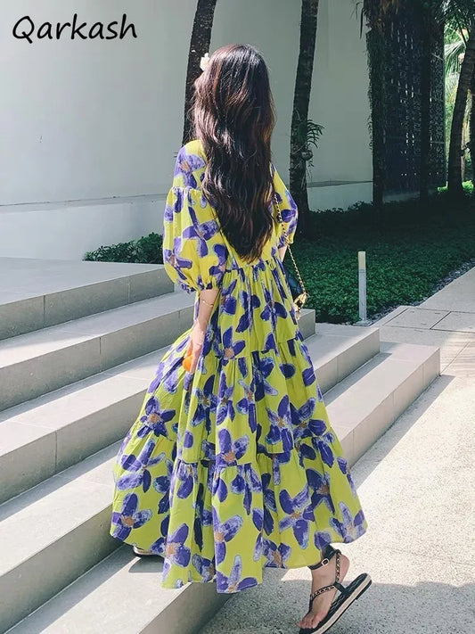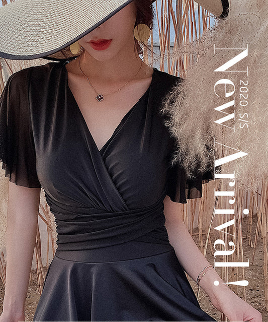 Vireous Elegant Gathered Resortwear Swimming Dress with Under Shorts
