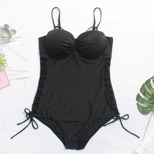Vireous Large Size Solid Colour One Piece Swimsuit
