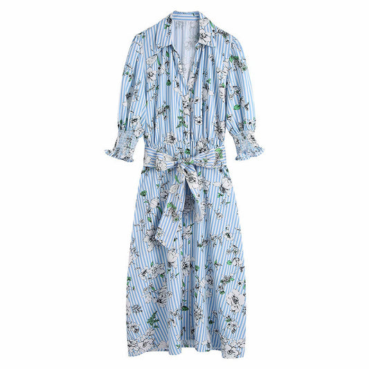 Vireous New Season Vintage-Style Printed Shirt Dress
