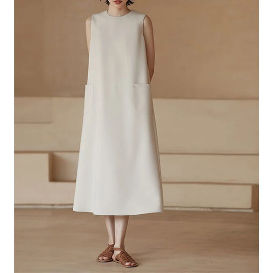 Vireous Minimalist Sleeveless Loose Midi Tank Dress