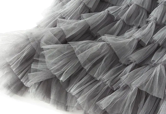 Vireous Solid Colour Ball Gown Long Tiered Skirt