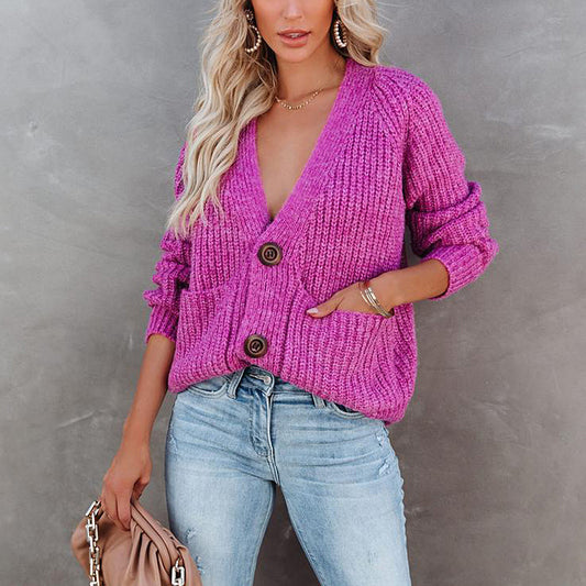 Vireous Solid Colour Cardigan Single-Breasted Long-Sleeved Sweater Coat