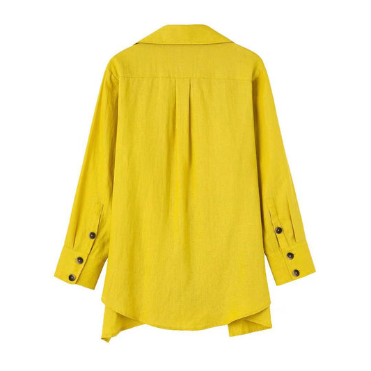 Vireous Vivid Yellow Linen Dress Shirt and Casual Pants Suit