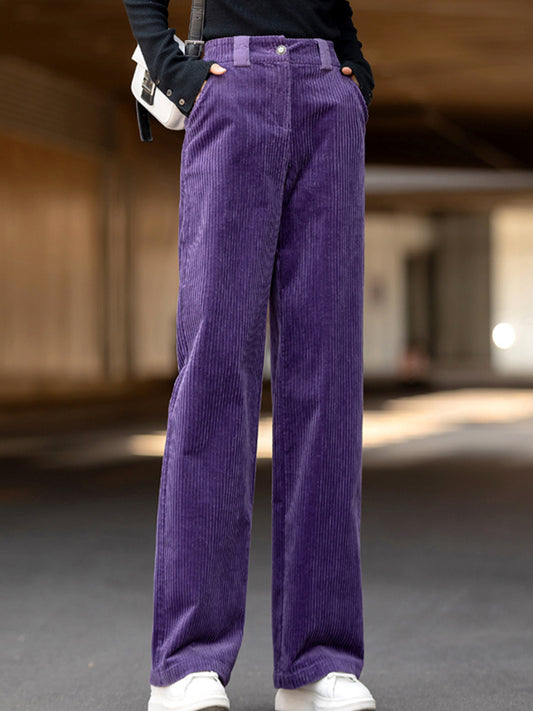 Vireous Women's High-Waisted Purple Corduroy Pants