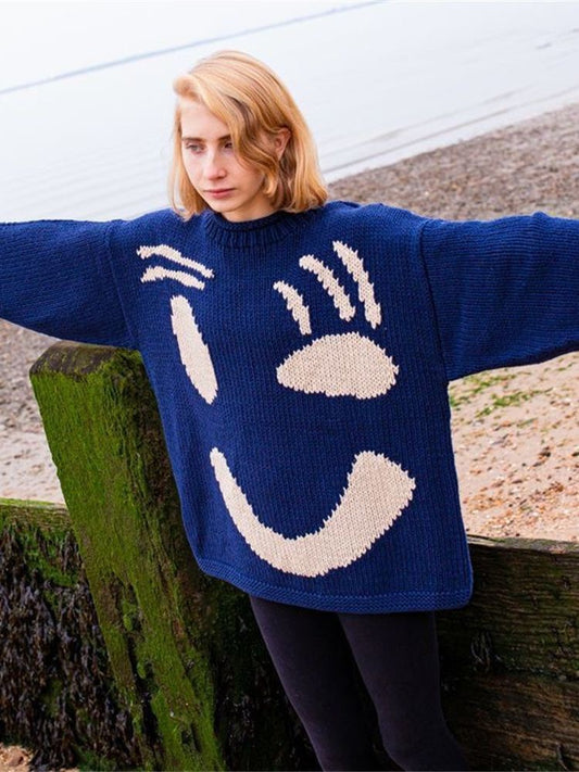 Vireous Women's Knitted Cartoon Pattern, Art Lover Sweater
