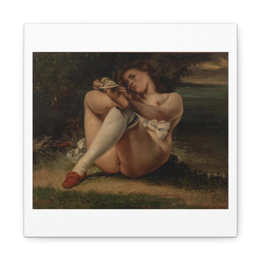 Woman with White Stockings 'La Femme aux Bas Blancs' (1861) by Gustave Courbet, Art Print from the Original on Satin Canvas