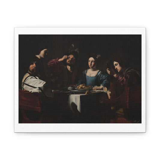 Banquet Scene with a Lute Player (1625) by Nicolas Tournier, from the Original on Satin Canvas