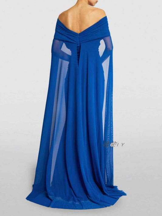 Women's Catwalk Open Back Off-Shoulder Cape Long Dress