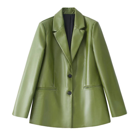 Women's Casual Loose-Fitting Faux Leather Pants Suit