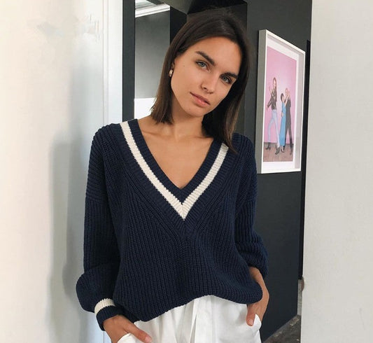Women's Casual Splicing Colour Contrast Cricket-Style Sweater