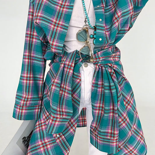 Women's Retro Classic Very Long Plaid Summer Shirt
