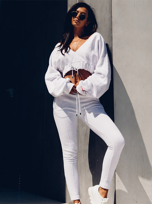Women's Sporty Low Cut Neckline Cropped Hoodie