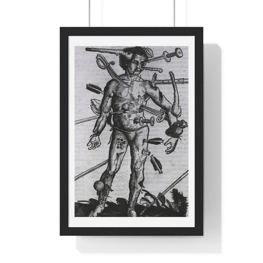 Wound Man (1519) by Hans von Gersdorff from 'Feldtbuch der Wundartzney', from the Original, Framed Print